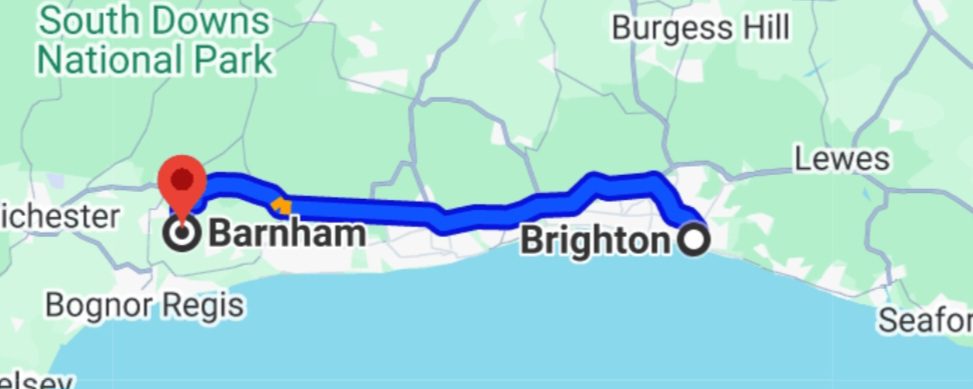 From Brighton, it was a direct, 45-minute train journey to Barnham, which is located along the coast, to the west of Brighton, five miles north of Bognor Regis.