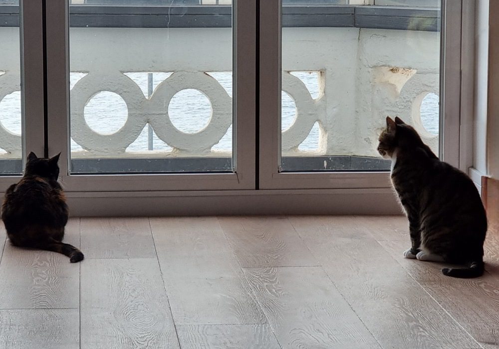 The new seafront location was a dream come true for their owner, but unfortunately for the cats, it meant they had lost their outside garden playground and were now confined to within the walls of the apartment.