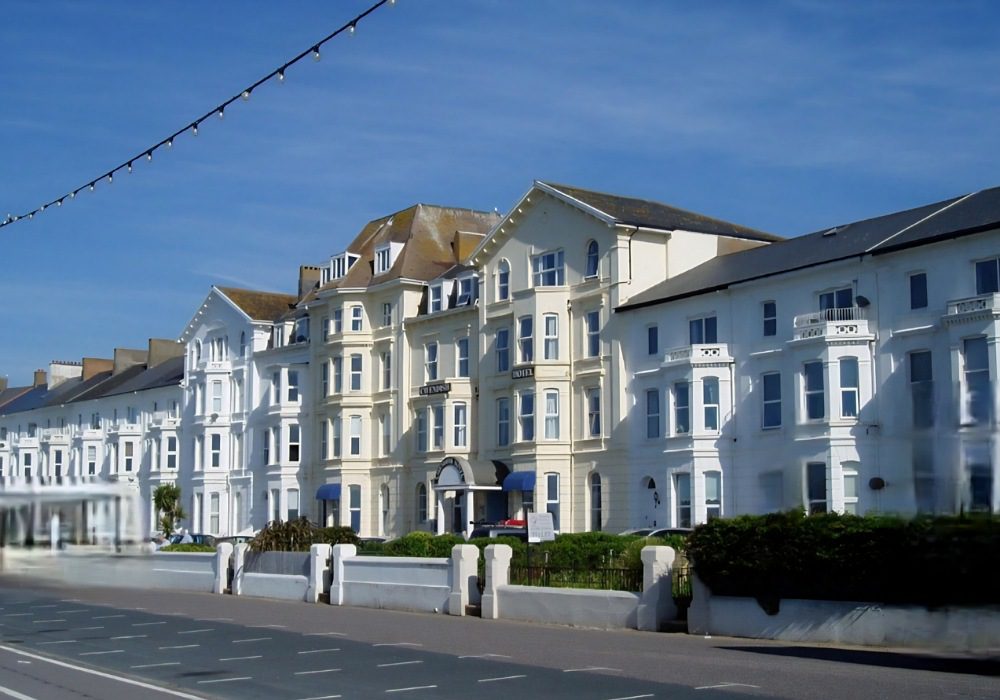 Along the seafront of Exmouth is a Crescent of large Victorian buildings.
